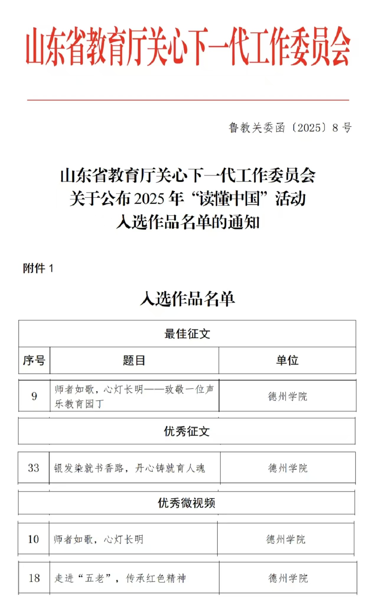 近日,山东省教育厅关心下一代工作委员会公布了2025年“读懂...[详细]