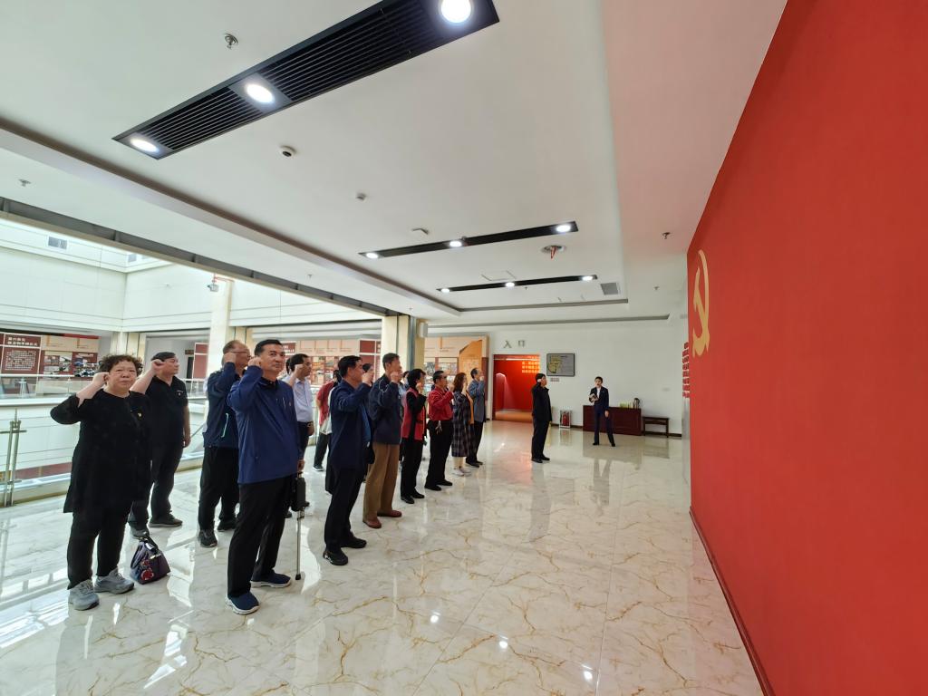 在齐河党员教育体验基地,围绕“使命呼唤担当”这一主题,讲解员带领大家学习参观。大家跟随讲解员的讲解,循着一幅幅照片、一件件展品,一幕幕场景,回顾学习了中国共产党在近现代历史上涌现出的好党员、好干部,同时缅怀了老一辈革命家的丰功伟绩,明确了为什么担当、担当什么、怎样担当等问题,增强了党员党性、提高了党员素质。参观结束后,全体人员在鲜红的党旗下,举起右手,握紧拳头,重温入党誓词,牢记使命担当。