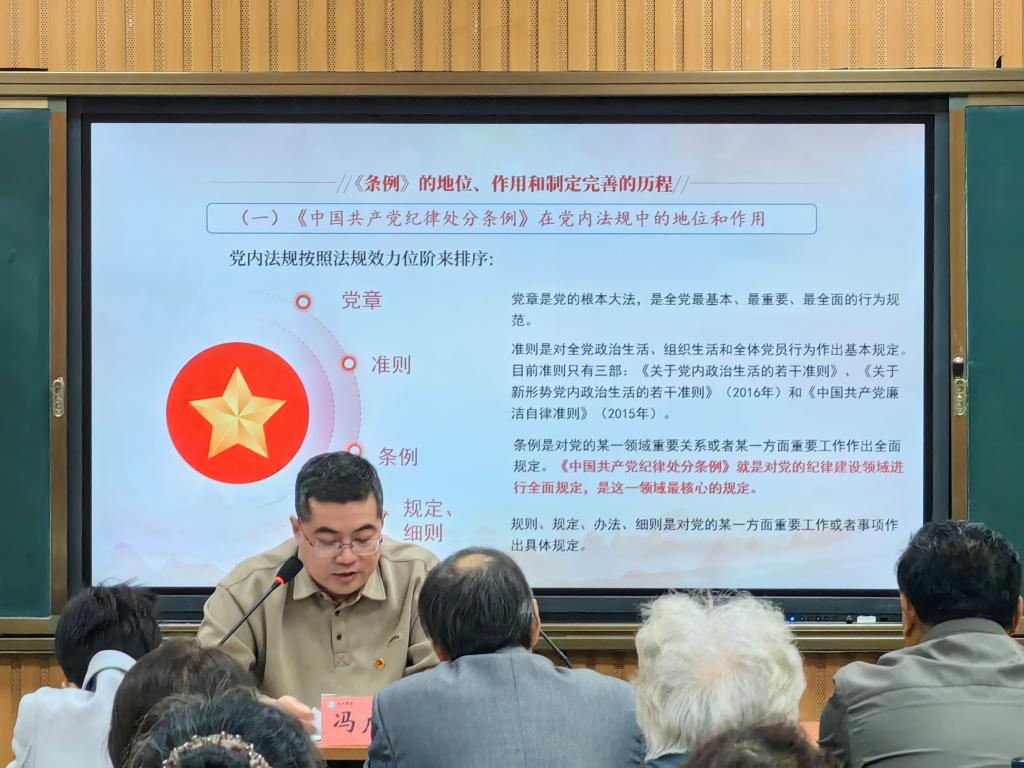 冯广冉从《条例》的地位、作用、制定完善历程,2023年修订的重要意义,主要内容,学习贯彻的具体要求等四个方面进行深入解读。辅导主题鲜明,逻辑清晰,典型生动,深入浅出。