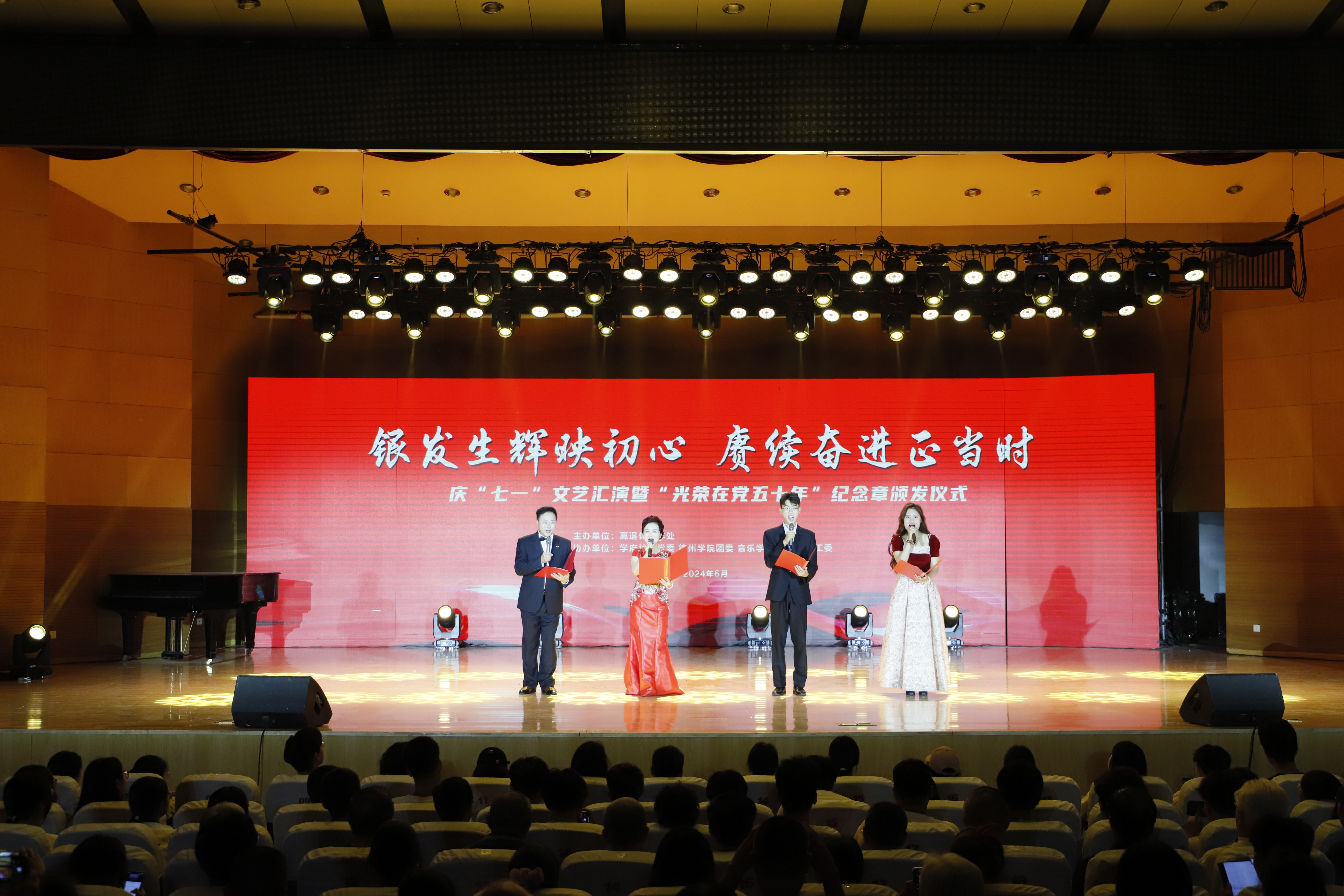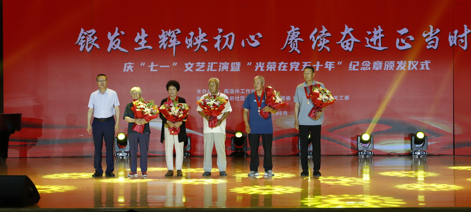 6月19日上午,“银发生辉映初心,赓续奋进正当时” 庆“七一”文艺汇演暨“光荣在党五十年”纪念章颁发仪式在音乐厅举行。校党委书记吴君,党委副书记、校长赵长林,党委副书记张存峰,校关工委主任王金利,退休校领导金清云、贺金玉、杨春喜、刘昭滨、王凤良、荆学松、张明征出席本次活动。