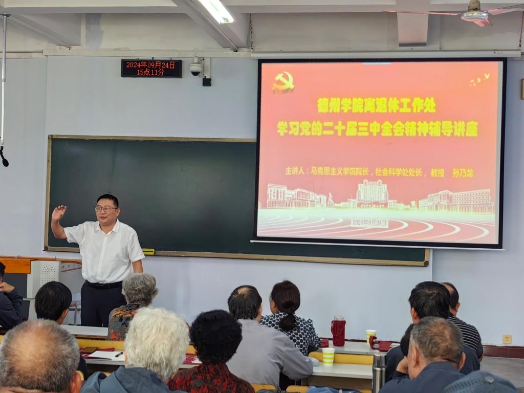 9月24日,17c蘑菇吃瓜官网黑料爆料在美术楼0103室举办党的二十届三中全会精神专题辅导讲座。讲座邀请马克思主义学院院长、社会科学处处长、教授孙乃龙作辅导。