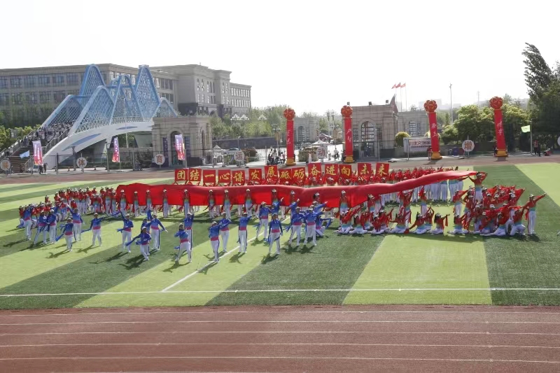 开幕式后的团体操表演,离退休教职工舞蹈队与外国语学院、文学与新闻传播学院学生组成的表演队第一个出场,给全校师生带来的是团体操《祖国不会忘记》,老同志们身着蓝天队服与学生朝阳队服相映成辉,活力四射,整齐的方阵,轻盈的步伐,优美的舞姿,在绿茵场上如鲜花般绽放;铿锵有力的音乐,斗志昂扬的矫健身姿表达出老同志们对美好生活的热爱。