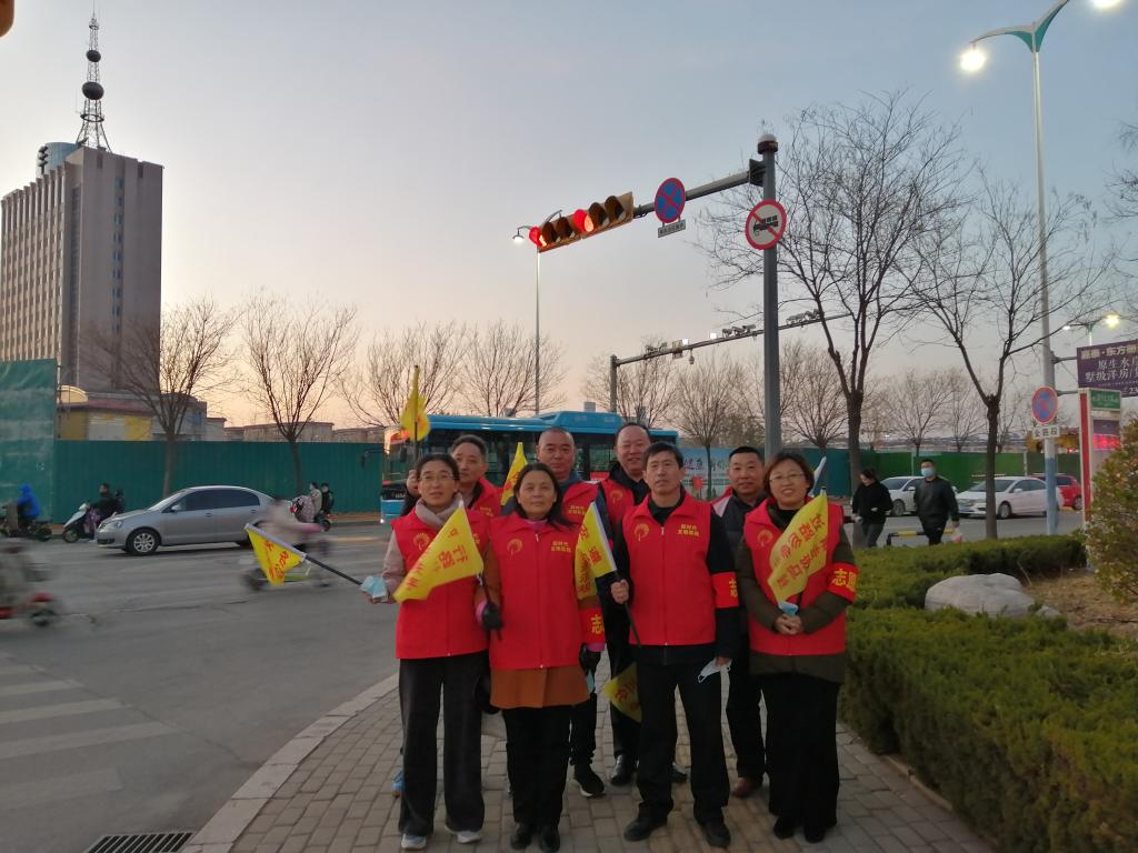 3月22日下午,17c蘑菇吃瓜官网黑料爆料志愿者服务队走上街头,在大学路与德兴路交叉路口开展疏导交通倡导文明出行志愿服务活动,助力德州文明城市创建。
