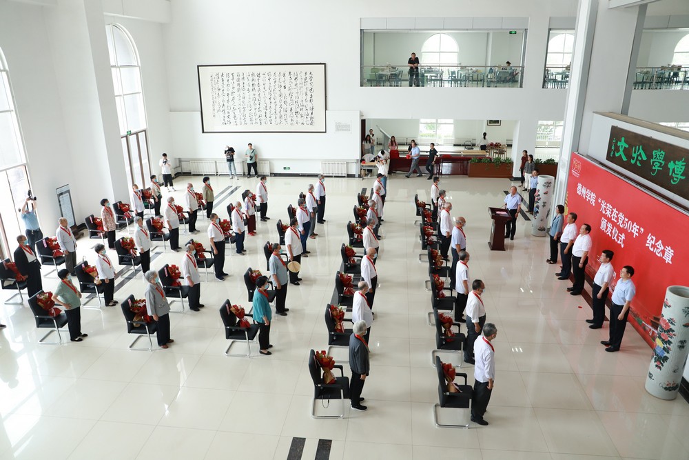 车滨、王金利、张明征、刘继泉、杨恩红、任立春为38名“光荣在党50年”纪念章获得者现场颁发了纪念章。