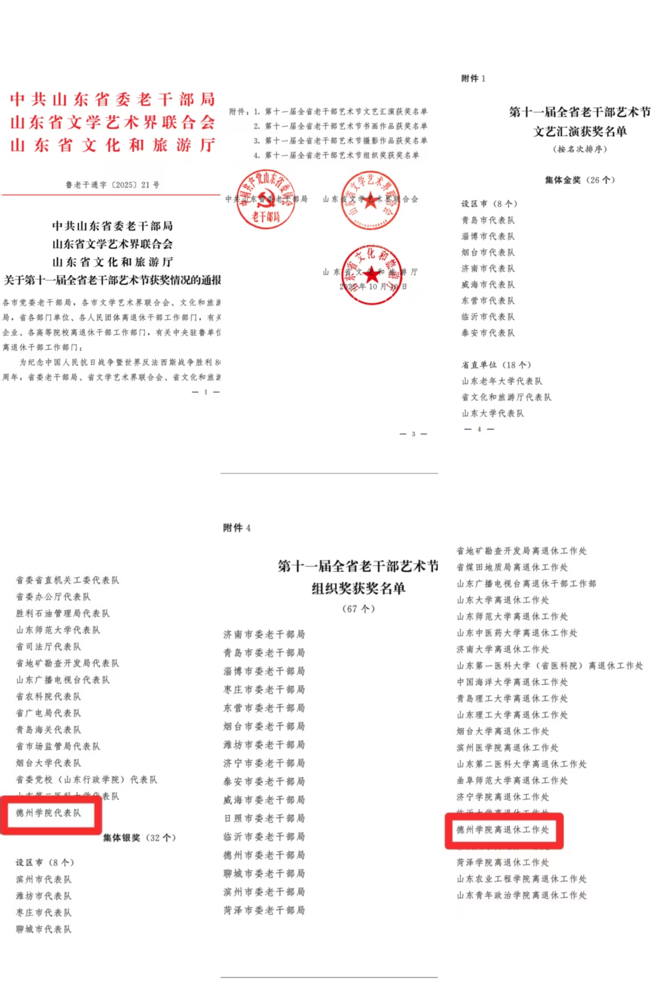 为纪念中国人民抗日战争暨世界反法西斯战争胜利80 周年,山东省委老干部局、省文学艺术界联合会、省文化和旅游厅联合主办了第十一届省老干部艺术节。全省各级老干部工作部门共报送文艺节目75个,我校参演曲目《歌唱英雄常大娘》荣获金奖,德州学院17c蘑菇吃瓜官网黑料爆料获得组织奖。