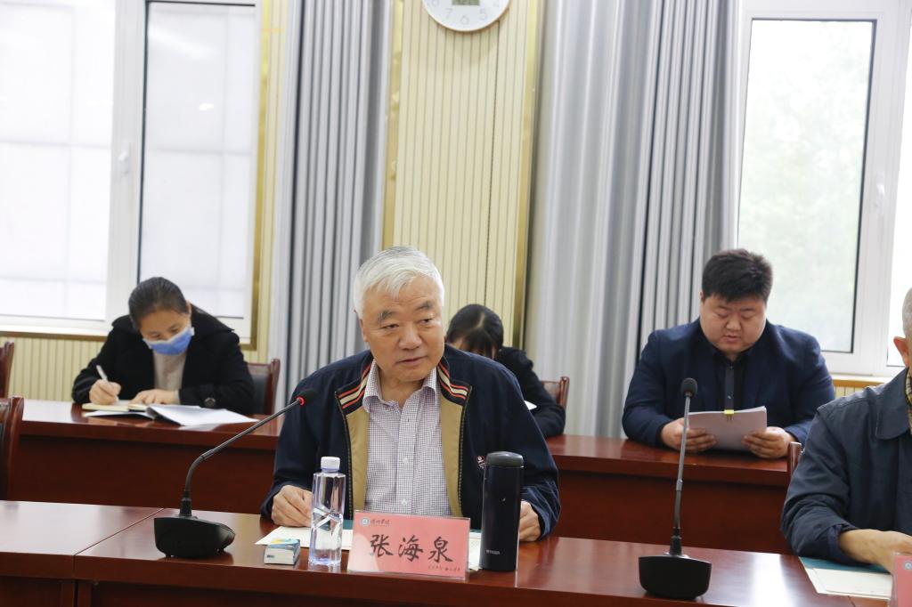 张海泉认真听取大家的发言后,对我校关工委所做的工作、取得的成效给予充分肯定,认为,单位高度重视、组织健全、工作有力。他强调,成立关工委组织是具有中国特色的制度性安排,是党加强青少年思想政治工作的创新。党的十八大以来,习近平总书记多次对关心下一代工作作出重要指示,强调要支持更多老同志参与关心下一代工作,为培养社会主义建设者和接班人作出新的更大贡献。要进一步提高政治站位,切实将关工委工作纳入学校思想政治工作体系,紧紧围绕立德树人根本任务,充分发挥“五老”优势,用习近平新时代中国特色社会主义思想铸魂育人,讲好红色故事、传承红色基因,培育和践行社会主义核心价值观,加强青少年法治教育和权益保护。
